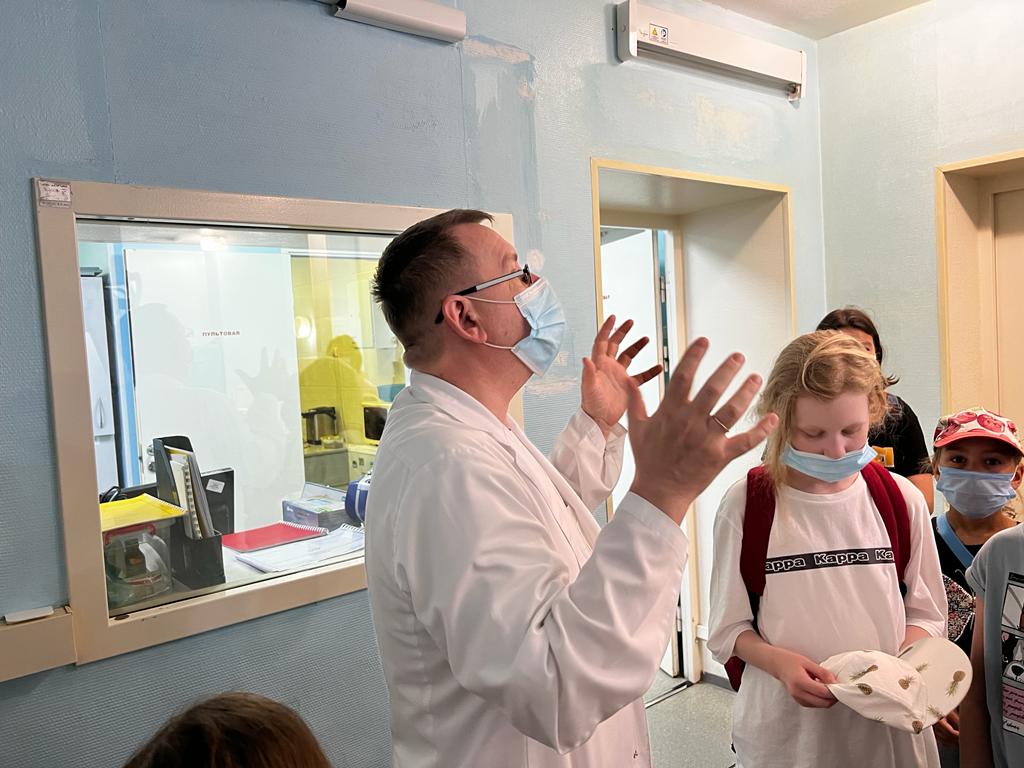 Особым оживлением среди детей и подростков всегда сопровождается демонстрация оборудования. Наших сегодняшних гостей – ребят из летнего лагеря на базе творческой студии «Счастливый художник» - интересовали рентген-установки, компьютерные и магнитно-резонансные томографы, то есть всё, что помогает врачам быстро и качественно обследовать пациента. Заведующий рентгенологическим отделением №1 Александр Жидяев посвятил детей в диагностический процесс и объяснил, как много зависит от задействованных в нём специалистов.