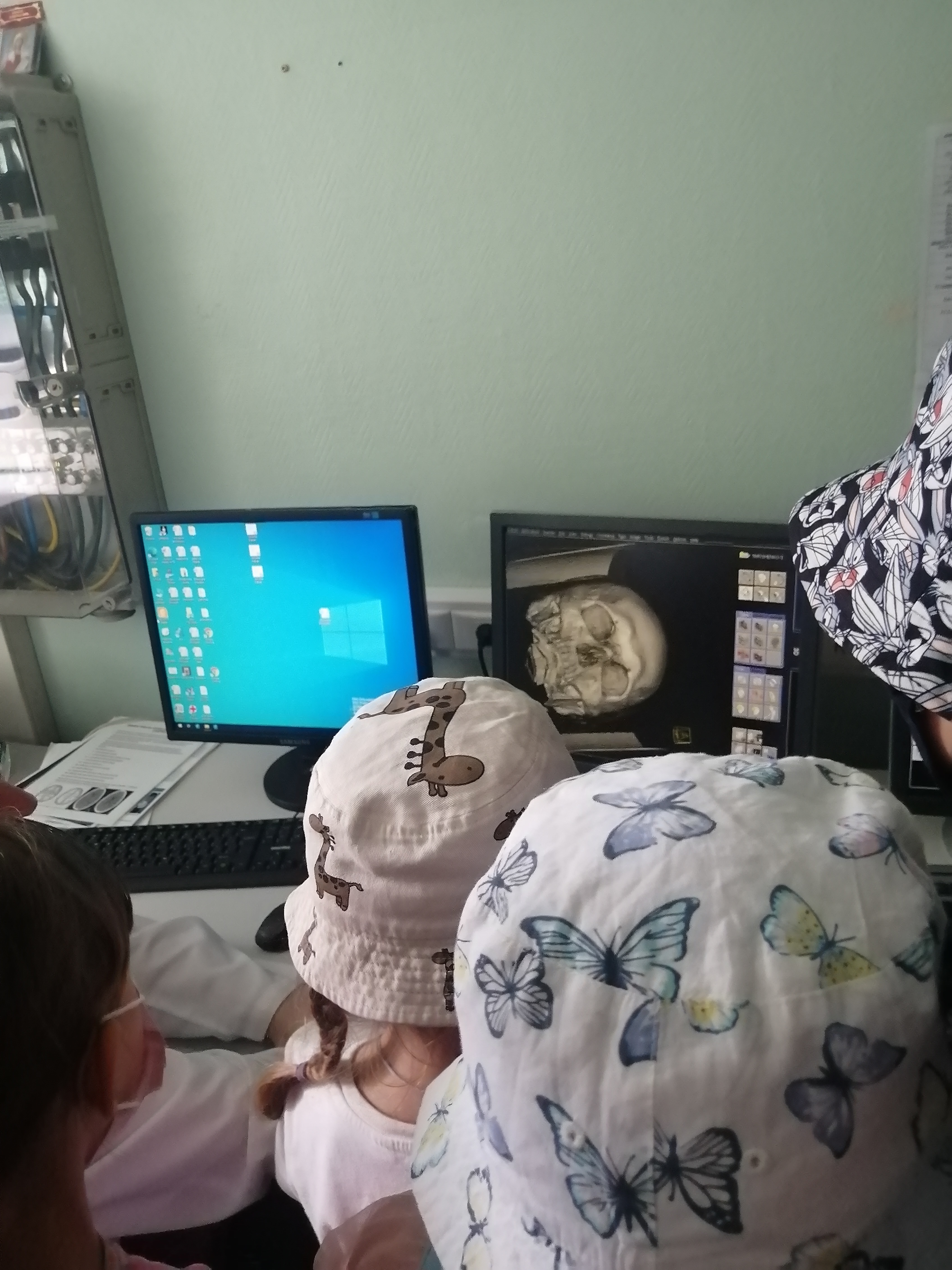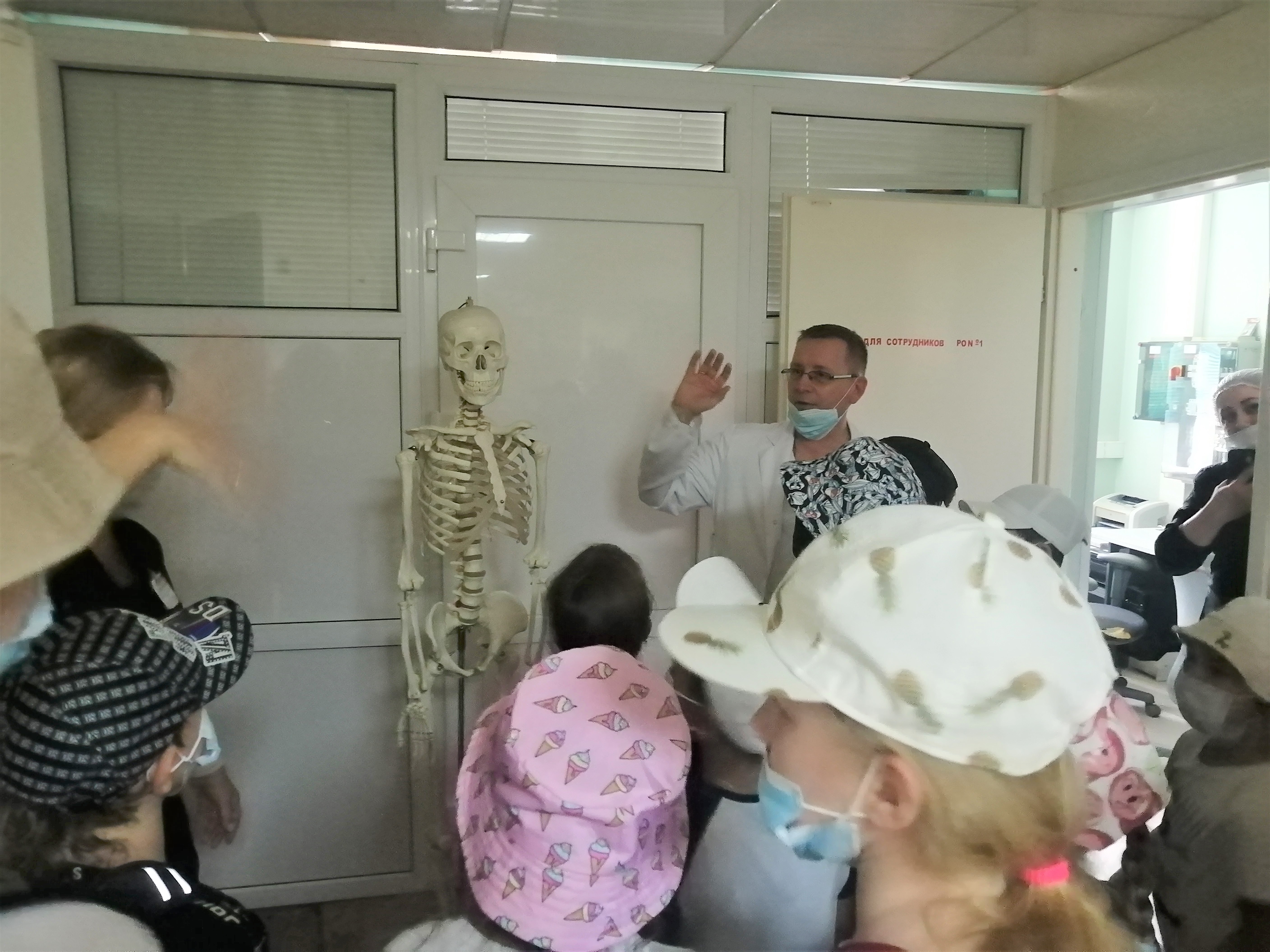 Кроме оборудования, внимания на экскурсии неожиданно удостоилась анатомическая модель скелета. Юным художникам приходится изучать строение человека, чтобы при рисовании соблюдать правильные пропорции. Поэтому они не упустили возможность рассмотреть макет в деталях и даже успели дать ему имя – Костя.