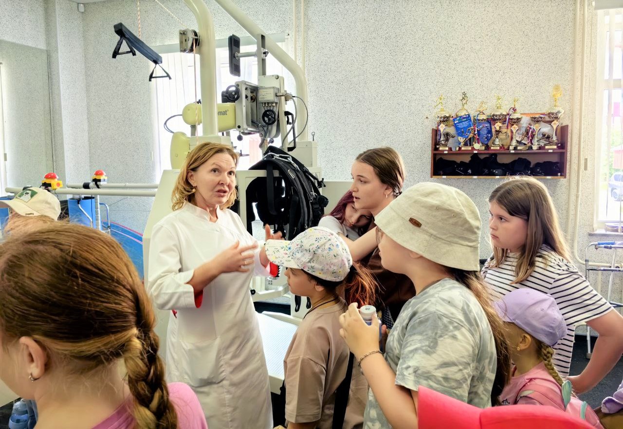 Поговорили в целом о роли медицинской реабилитации в лечебном процессе и, конечно, о задействованных на этом важном этапе специалистах. Во время профориентационных мероприятий стараемся пробудить интерес подрастающего поколения к востребованным в больнице профессиям. Уверены, что наши увлеченные сотрудники, которые всегда рассказывают о своей работе с горящими глазами, не оставляют равнодушными участников экскурсий.