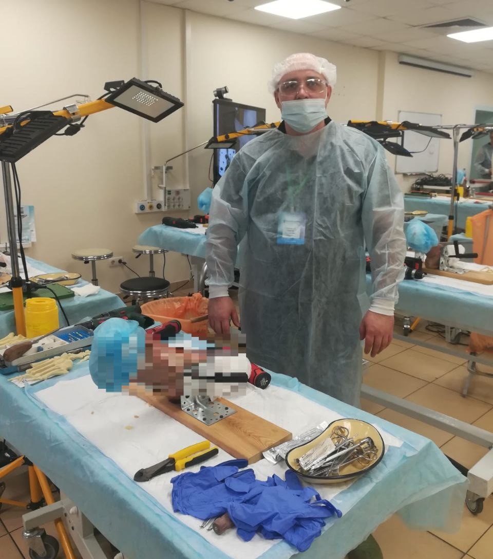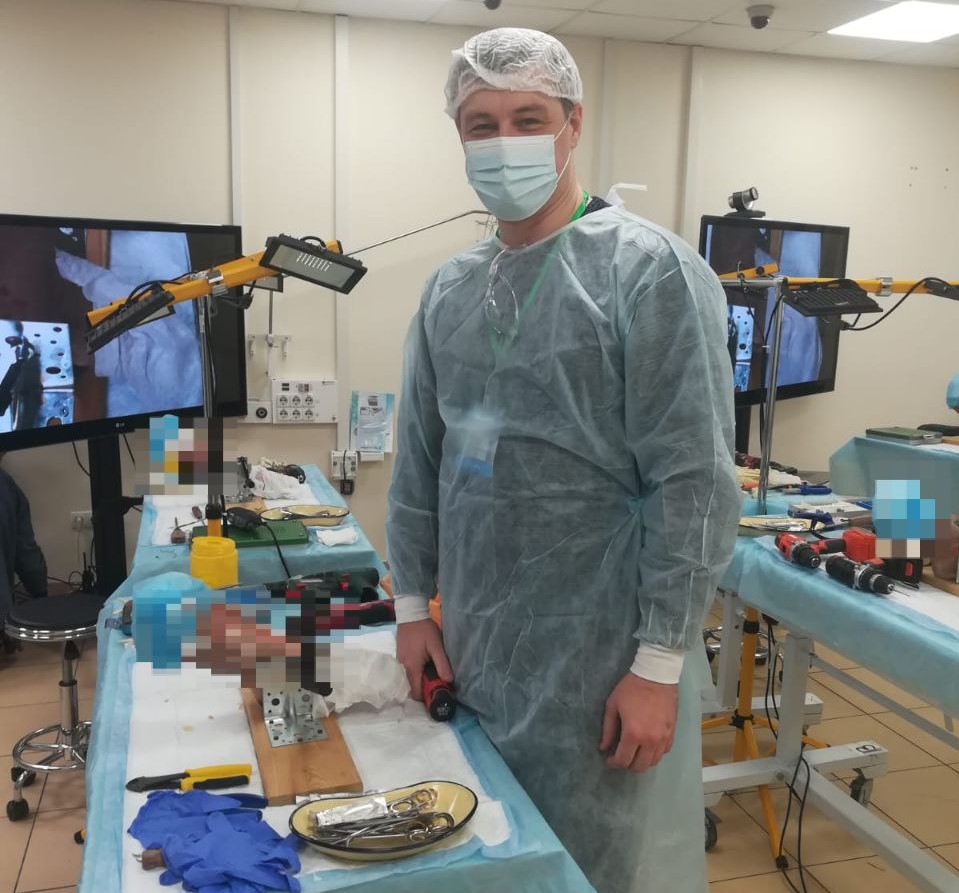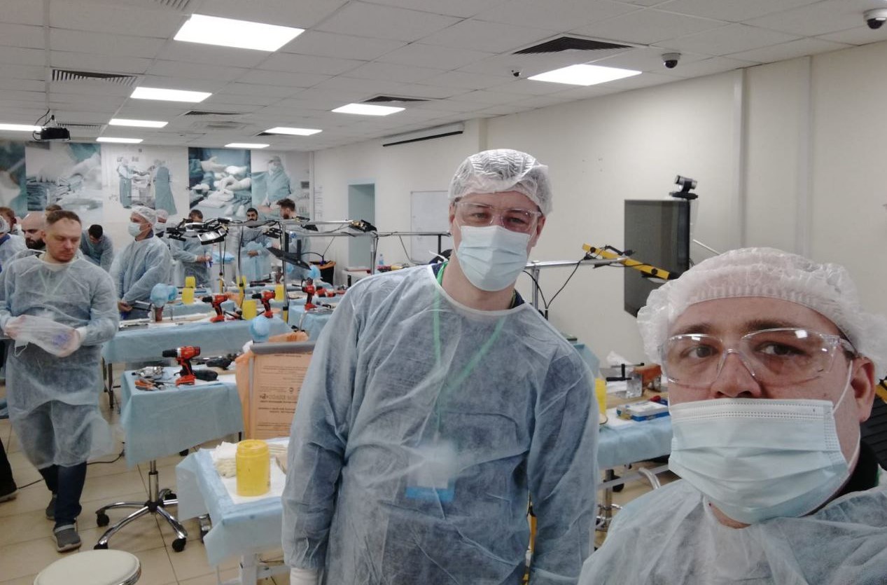 Оперативное лечение стопы и голеностопного сустава – отдельное направление в ортопедии. Работа с мелкими структурами требует особых знаний и подготовки. Очередную ступень профессионального роста перешагнули заместитель главного врача по медицинской части Андрей Миронов и заведующий отделением травматологии и ортопедии №1 Сергей Глиняный. Они прошли практический курс от российской Ассоциации хирургов стопы и голеностопного сустава. Это была завершающая часть трехэтапной образовательной программы. Два предыдущих уровня – базовый и продвинутый – наши специалисты освоили ранее. Мастерский уровень - самый сложный и рассчитан на опытных врачей. Здесь они имеют дело с запущенными случаями и осложнениями, поэтому должны комбинировать методики и находить нестандартные решения. Обучение проводилось в современном симуляционном центре национального исследовательского медицинского университета им. Пирогова.