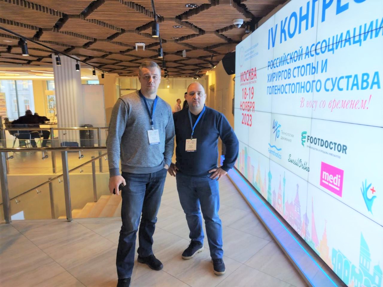 А сразу после практического мастер-курса Андрей Миронов и Сергей Глиняный присоединились к научному сообществу и приняли участие в IV Конгрессе хирургов стопы и голеностопного сустава. Специалисты в этой области ортопедии собираются раз в четыре года, чтобы поделиться своими наработками и открытиями за прошедший период. В нынешнем году на Конгрессе был представлен передовой опыт миниинвазивной хирургии стопы, оперативного лечения плосковальгусной, эквинусной, эквиноварусной деформации стопы и других патологий.