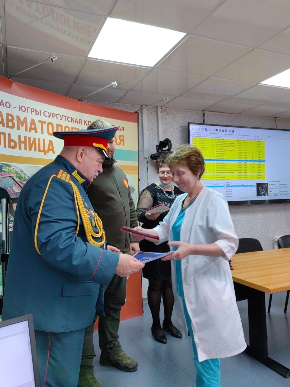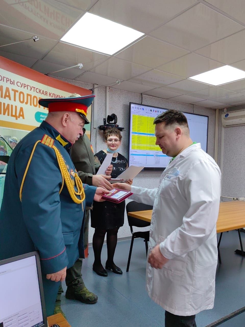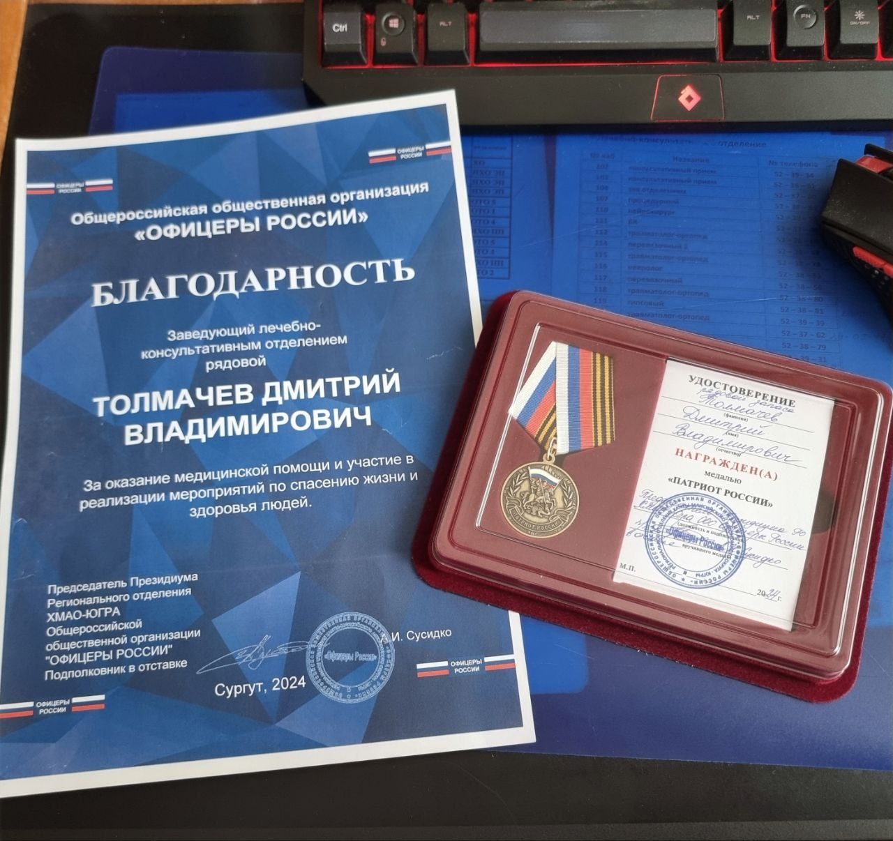 Накануне праздника Великой Победы коллектив Сургутской травмбольницы принимал поздравления и награды от регионального отделения общероссийской общественной организации "Офицеры России". Её благодарностями и медалями отмечены около 20-ти наших сотрудников. Многие из них побывали на прифронтовых территориях. Но в списке также и те, кто на своём рабочем месте самоотверженно, добросовестно и профессионально помогает прибывающим из зоны боевых действий мирным жителям и военнослужащим.