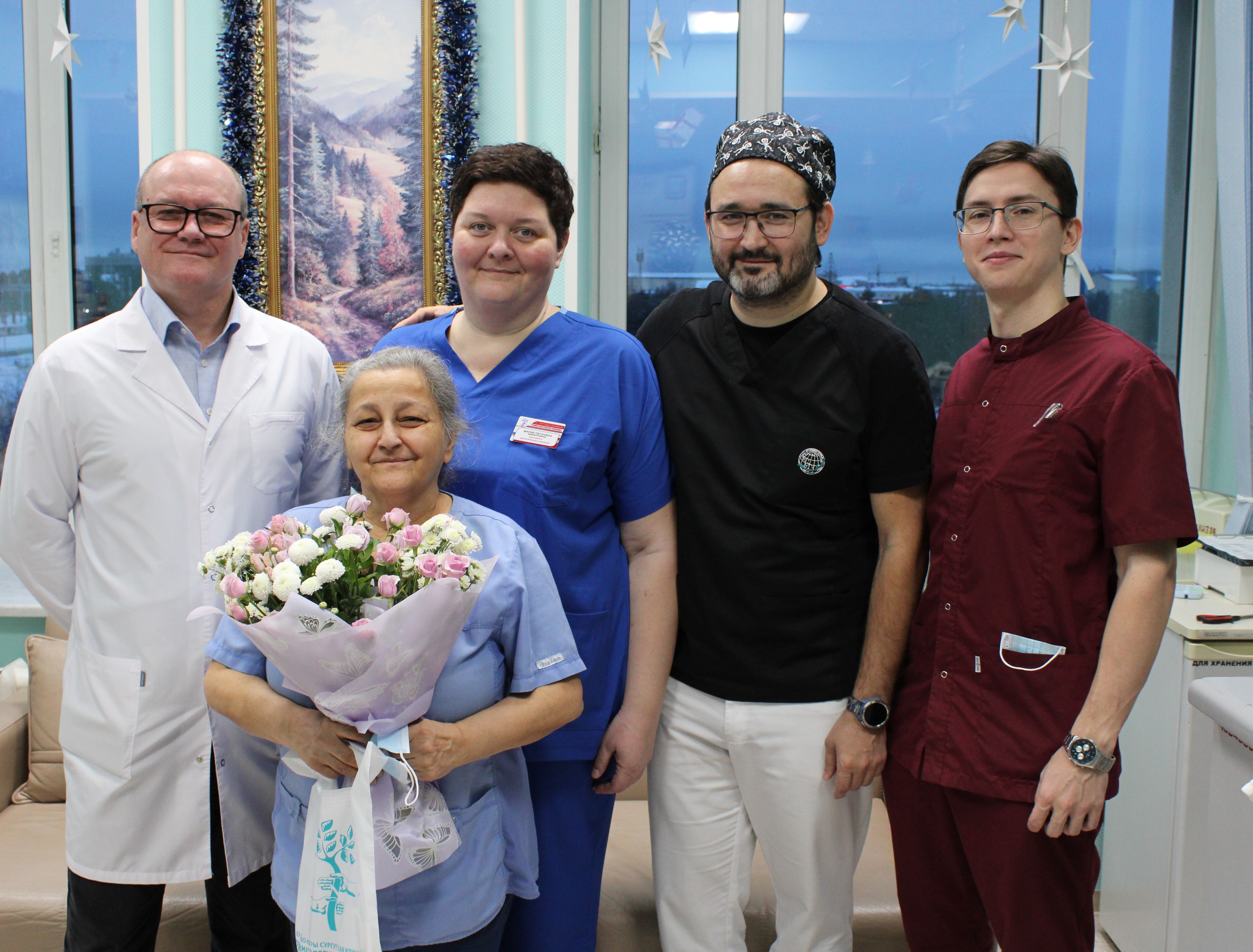 Врач-хирург Сургутской травмбольницы Татьяна Александровна Мкртычева принимает поздравления с юбилеем от коллег и пациентов.